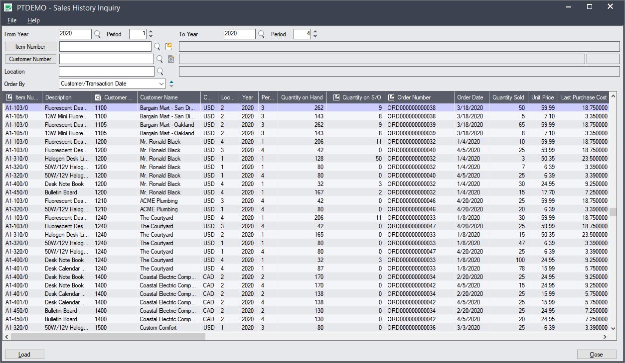 Sales History Inquiry