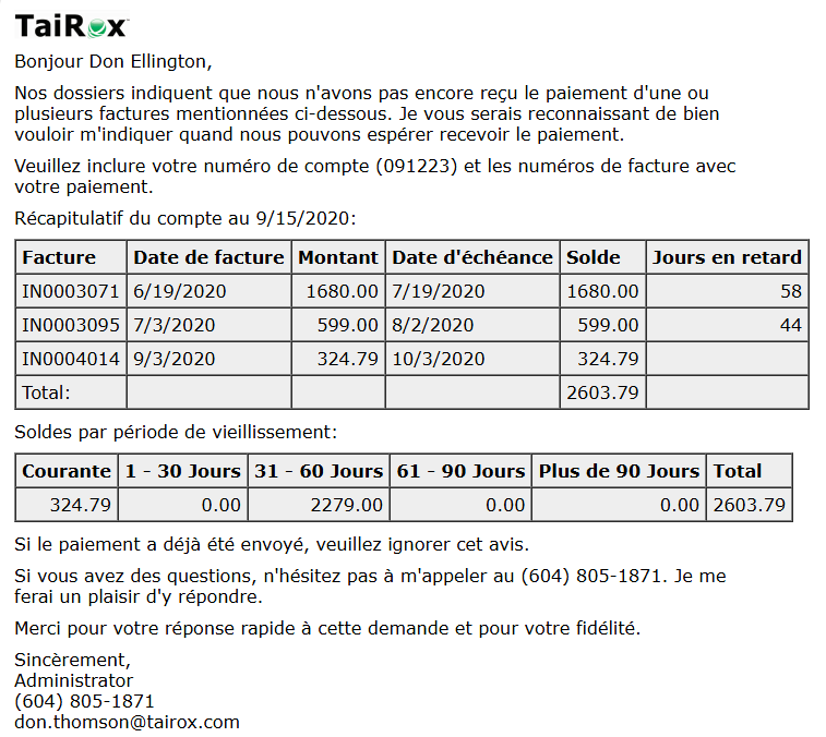 *New* French email templates are added for overdue payment reminders, payment due alerts, invoices and statements See: Picture